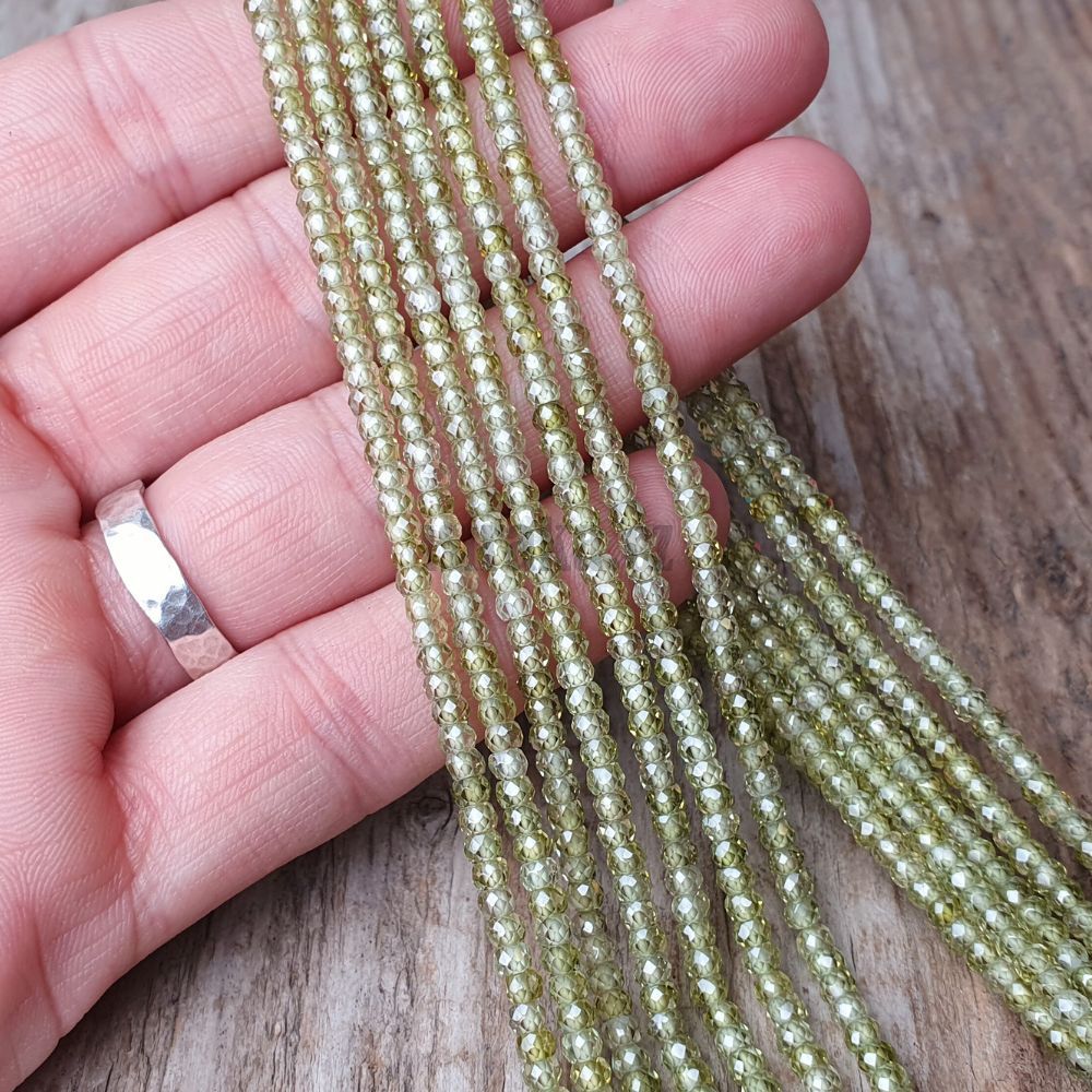 - Kubický zirkon korálky 3x2mm světle zelené rondelky broušené šňůra