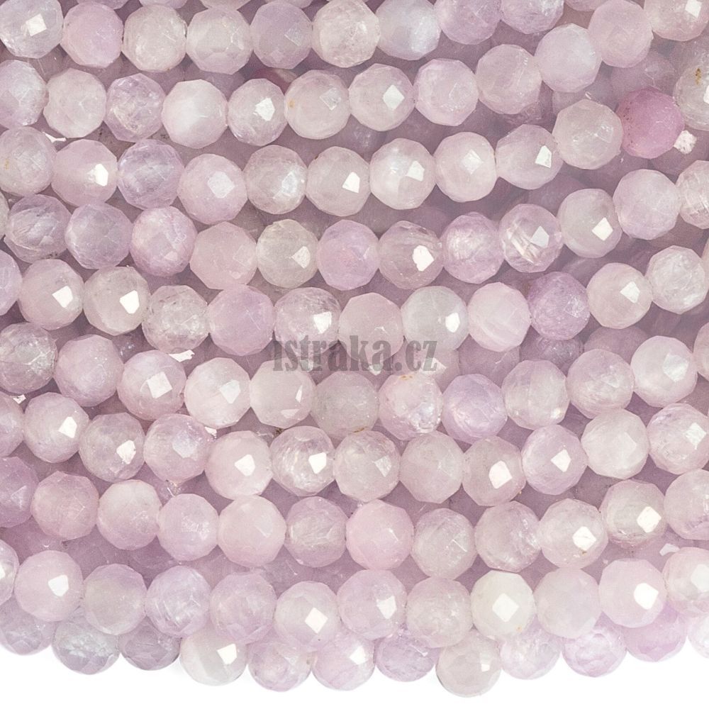 Kunzit korálky 3mm broušené A kvalita půlšňůra