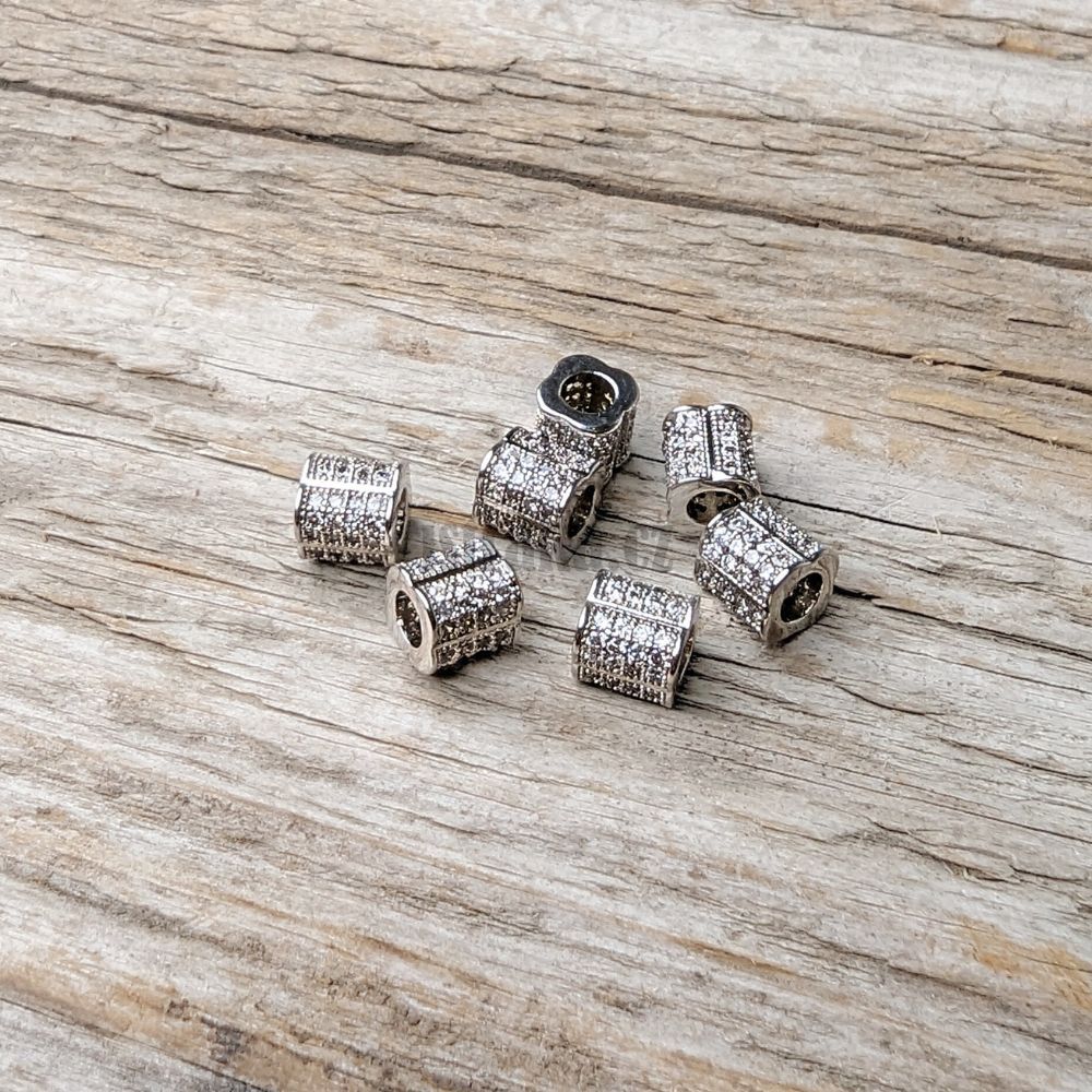 Kvádr korálek 6x6mm stříbrný s bílými zirkony