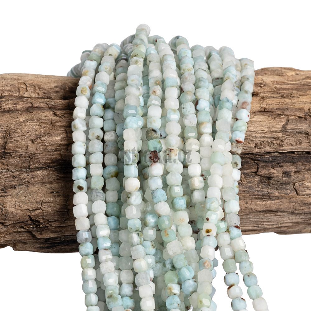 • Larimar korálky 2,5mm kostky broušené půlšňůra