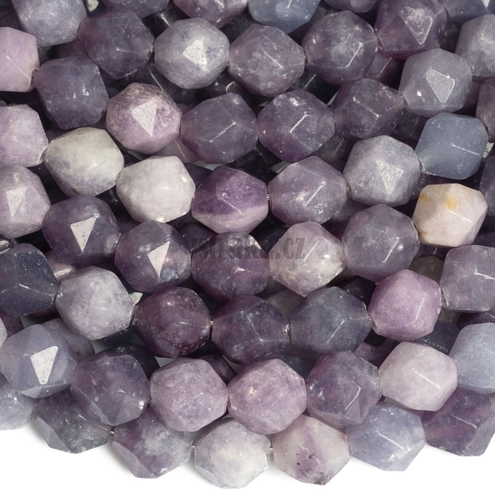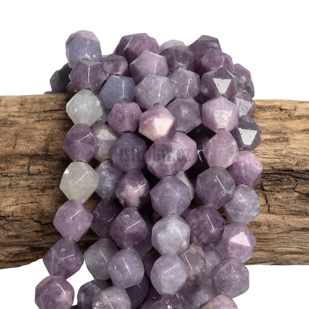 - Lepidolit korálky 10mm světlé bicone výbrus šňůra