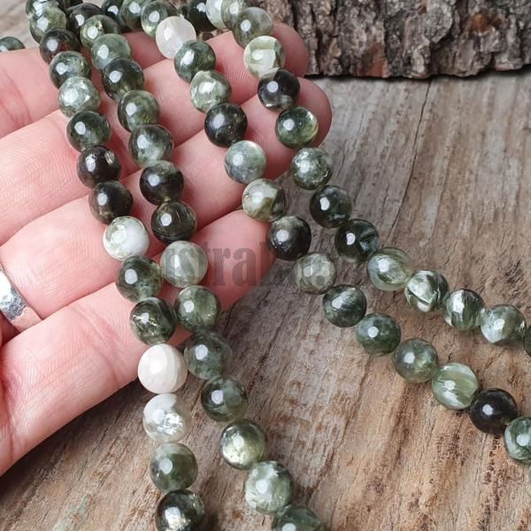 - Lepidolit zeleno bílý korálky 8mm půlšňůra