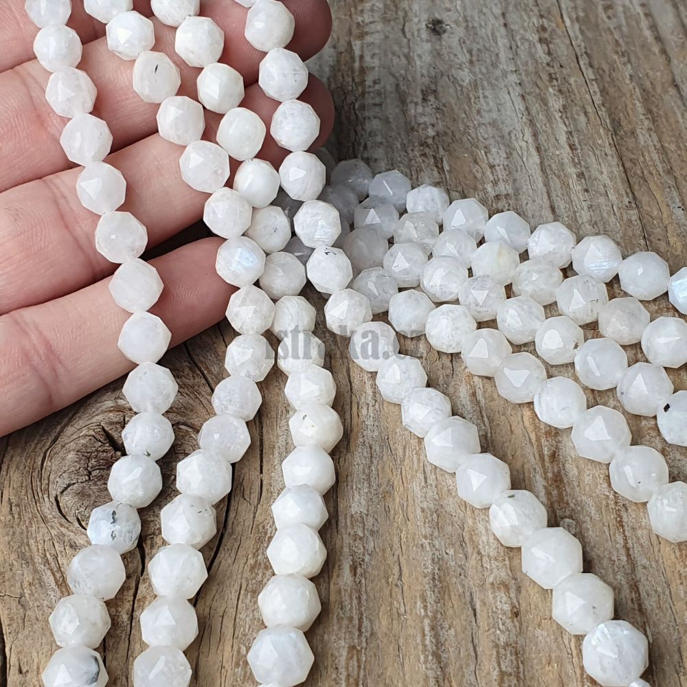 - Měsíční kámen bílý korálky 8mm diamantový výbrus půlšňůra