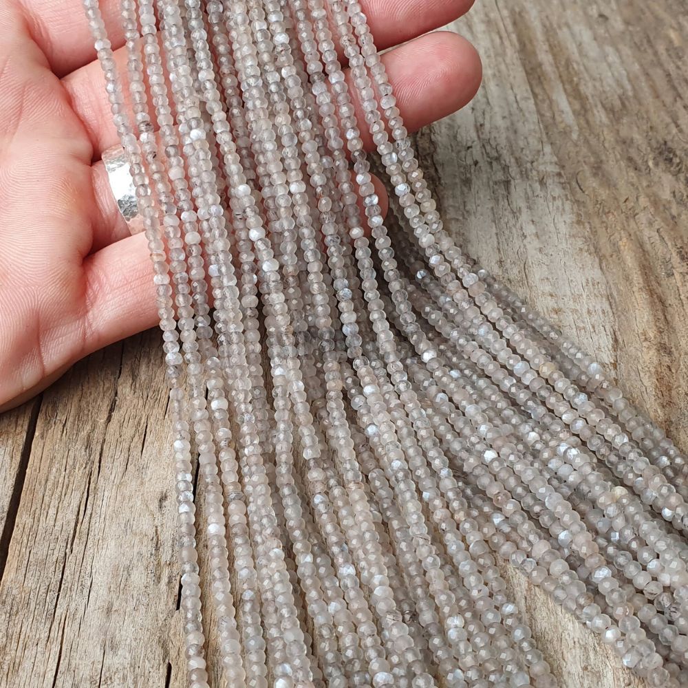- Měsíční kámen šedý korálky 3x2mm rondelky broušené šňůra