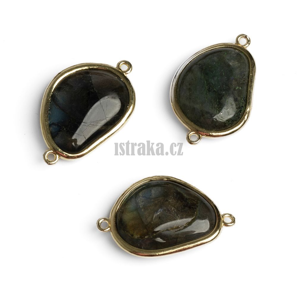 • Mezikus labradorit 18x30mm asymetrický zlatý rám