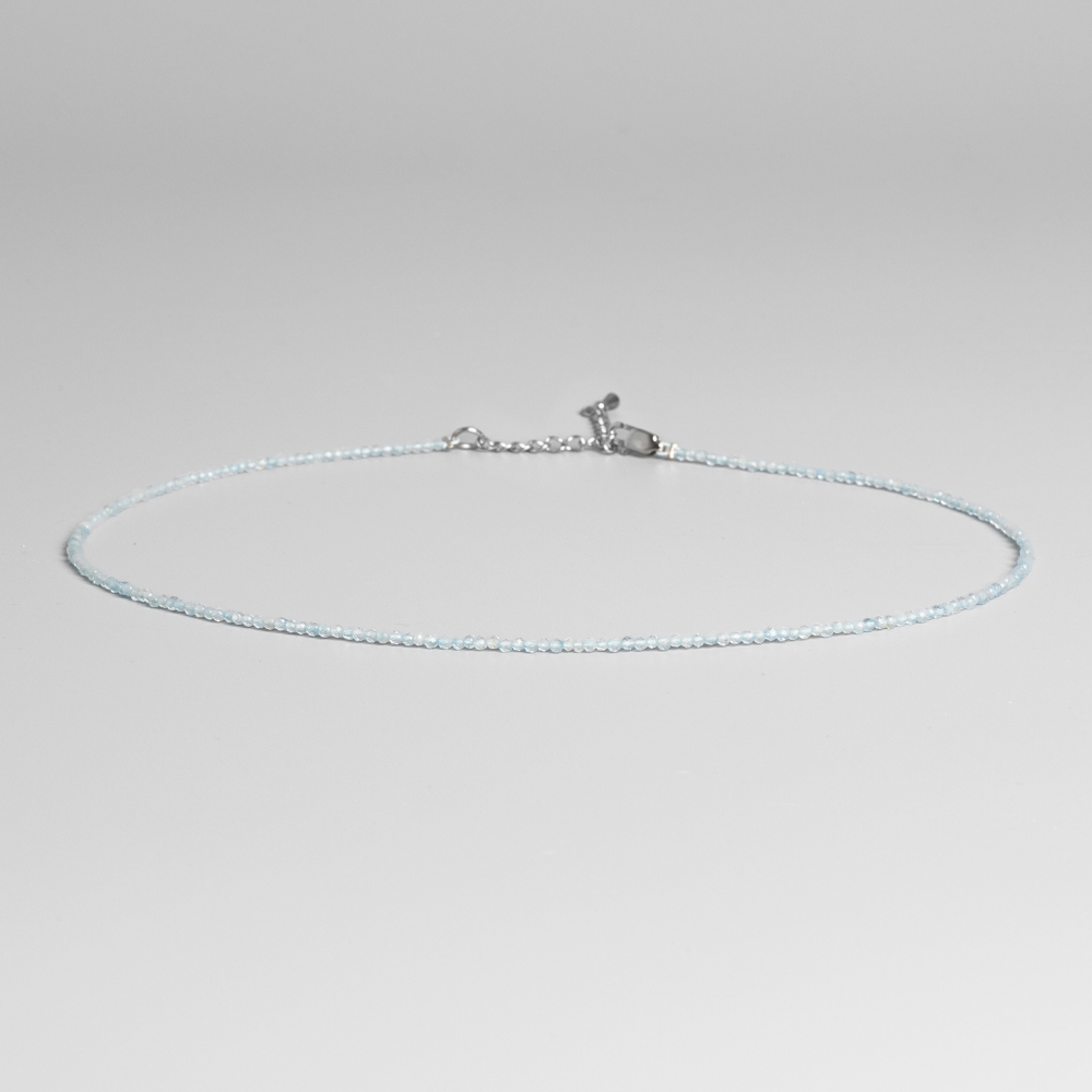 Jemný elegantní náhrdelník ze světlého apatitu. Náhrdelník je tvořen broušenými malinkými korálky a je ukončen karabinkou a prodlužovacím řetízkem dlouhým cca 7 cm, takže si můžete regulovat jeho délku.