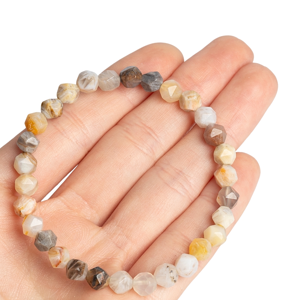 - Náramek achát bamboo 6mm bicone výbrus