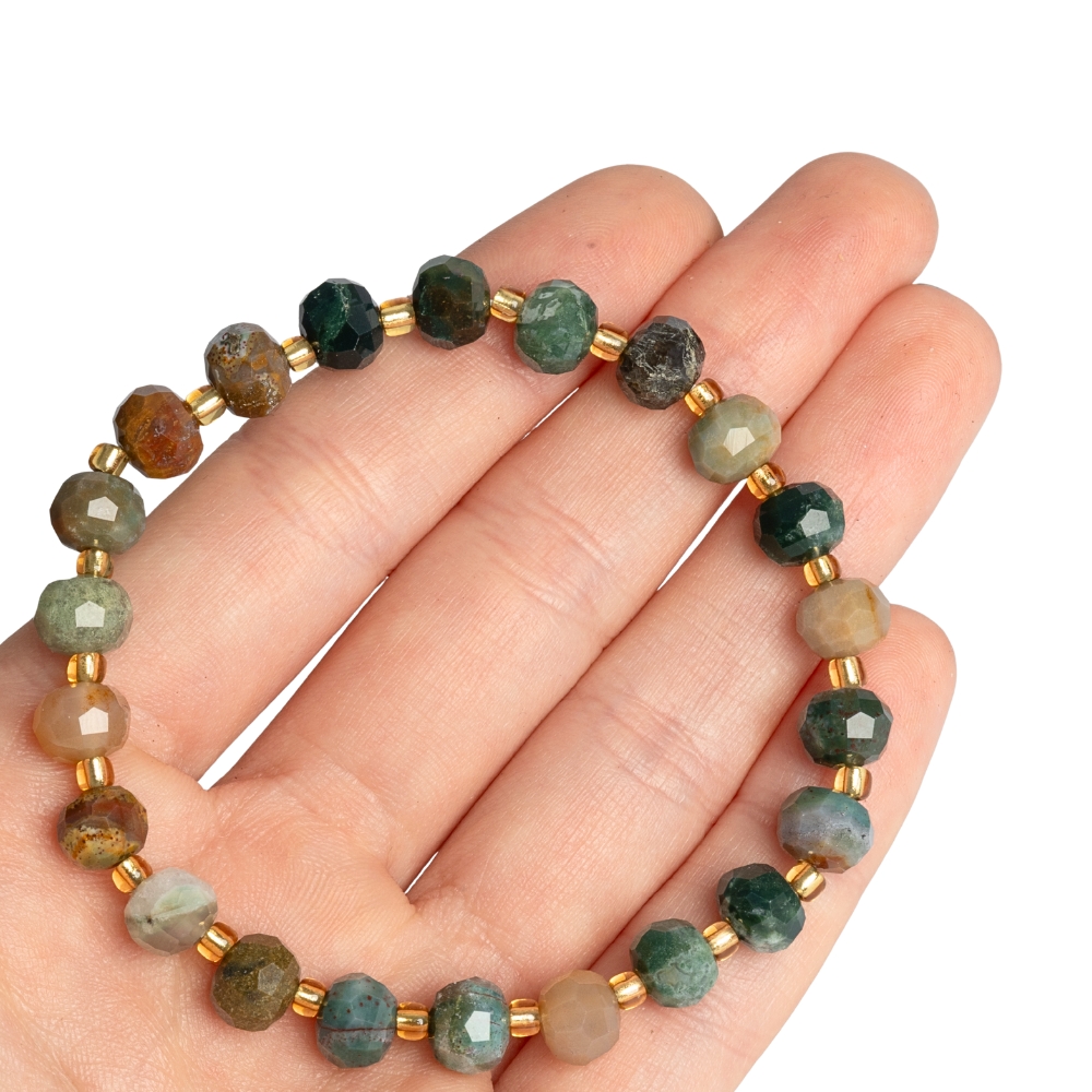 - Náramek achát indický 6x8mm broušené rondelky s rokajlem