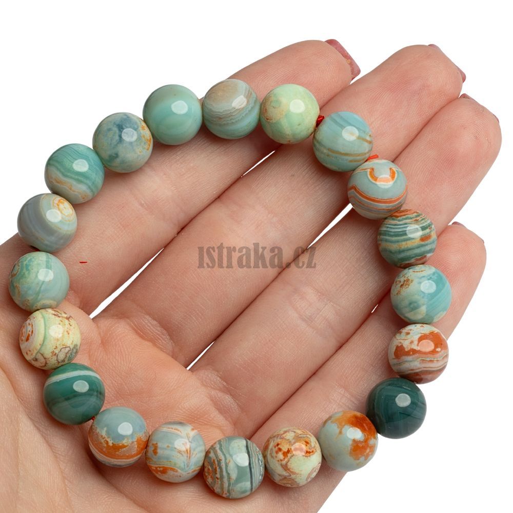 - Náramek se může mírně lišit od obrázku, ať už strukturou kamene nebo barvou, vzhledem k tomu, že je to kámen a ne každý polodrahokam je stejný. Tato vlastnost mu však neubírá na kráse, naopak mu přidává jedinečnost. Je to šperk, jaký budete nosit jen vy či někdo vašemu srdci blízký.