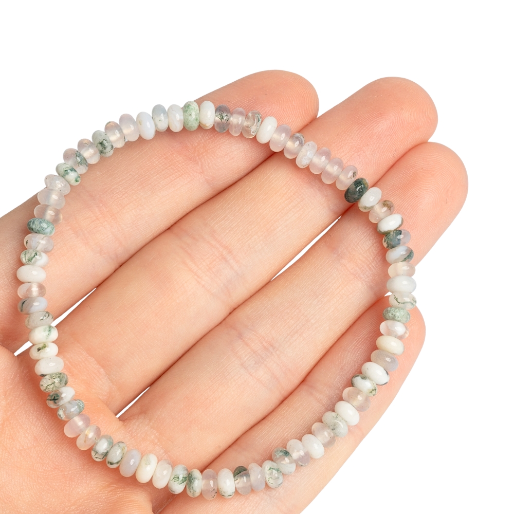 Náramek z přírodního minerálu achát stromkový v jemné zelenobílé barevné kombinaci. Náramek je elastický a pro pohodlné nošení vhodný na zápěstí s obvodem maximálně 16,5 cm.