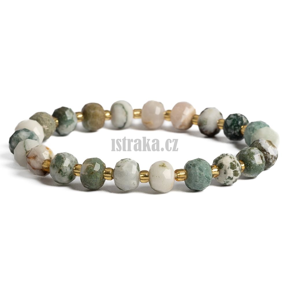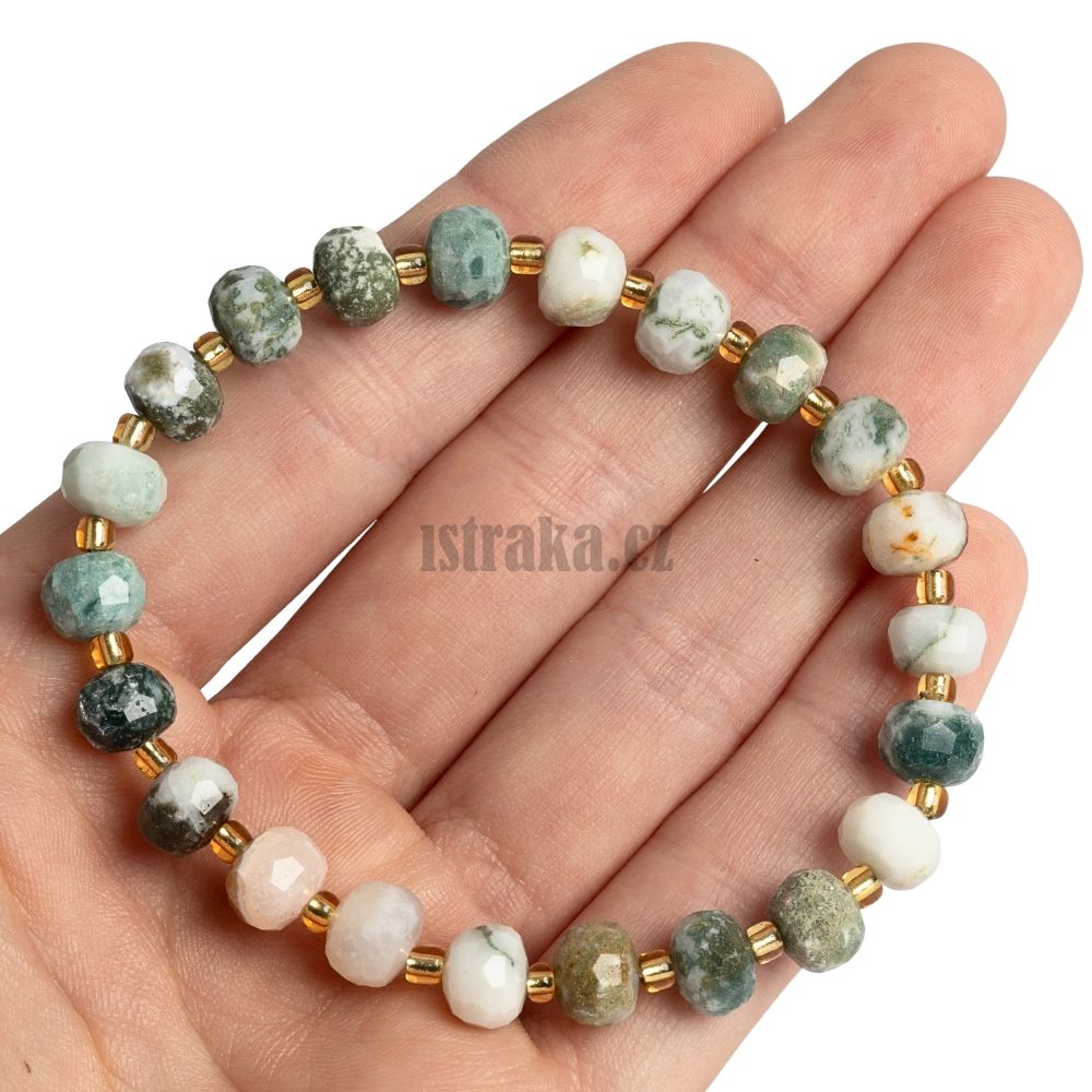 - Náramek achát stromečkový 6x8mm broušené rondelky s rokajlem