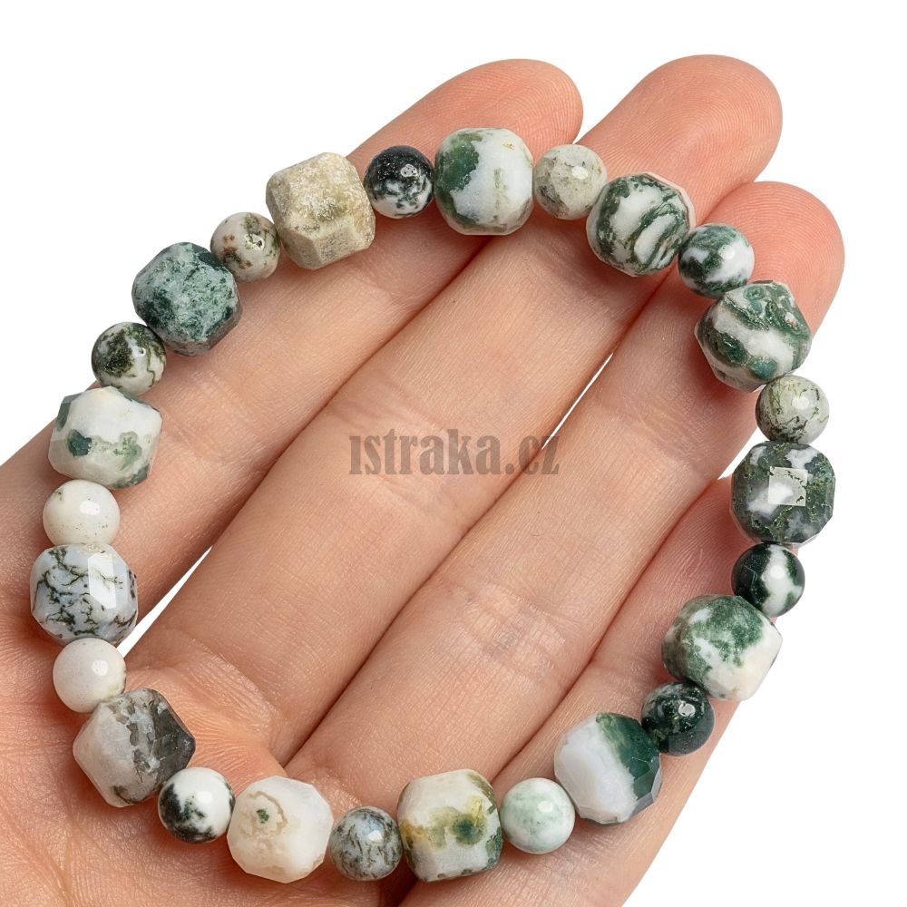 - Náramek achát stromečkový 8mm kostky + kuličky
