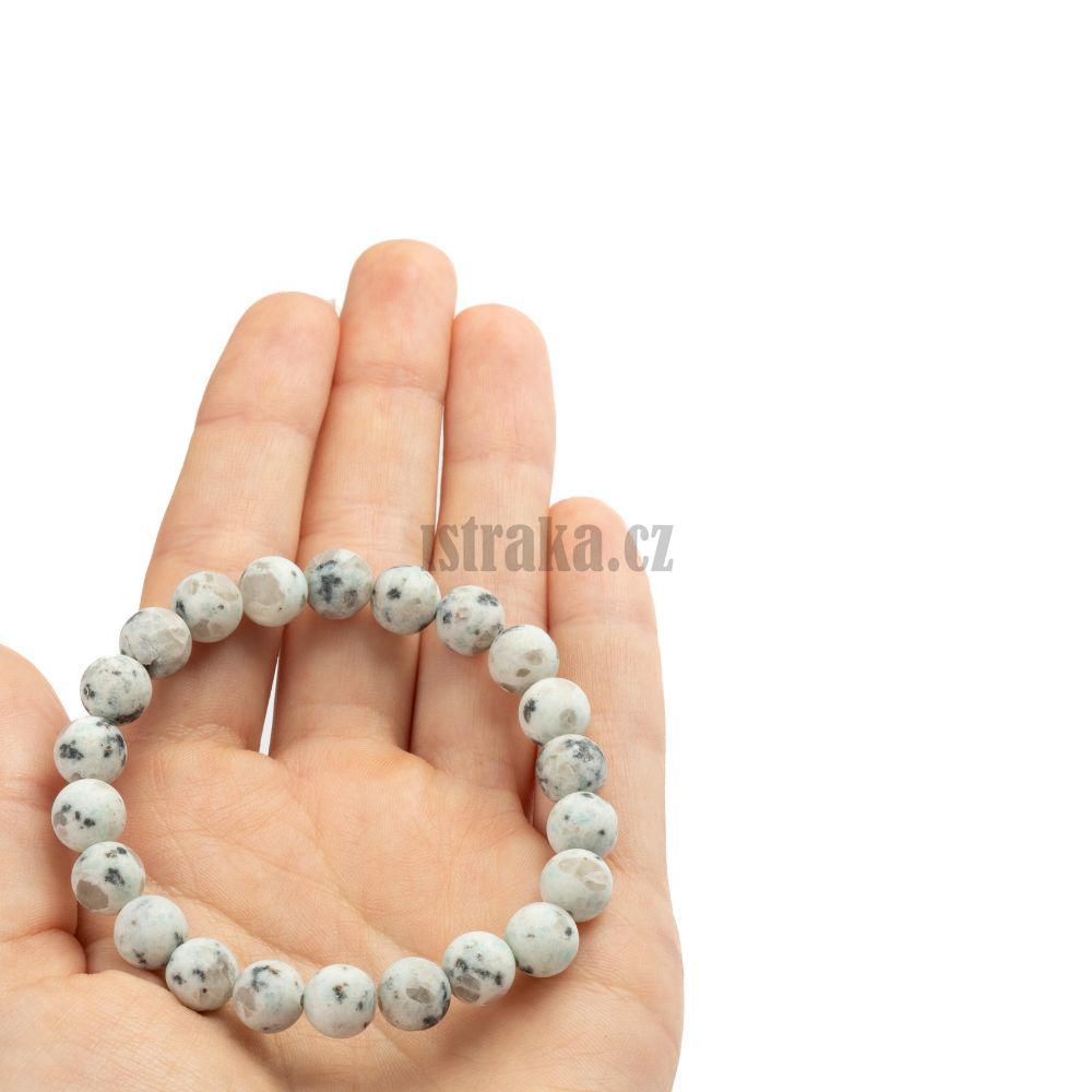 - Náramek je na kvalitní elastické gumičce navlečené dvojmo pro lepší pevnost. Lehce se navléká a sundává ze zápěstí.