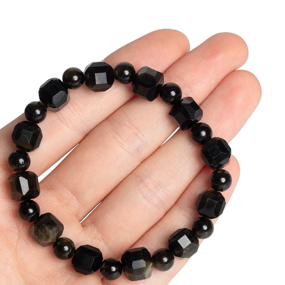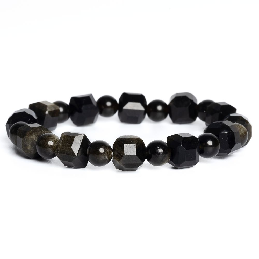 - Náramek obsidián zlatý 8mm kostky + kuličky