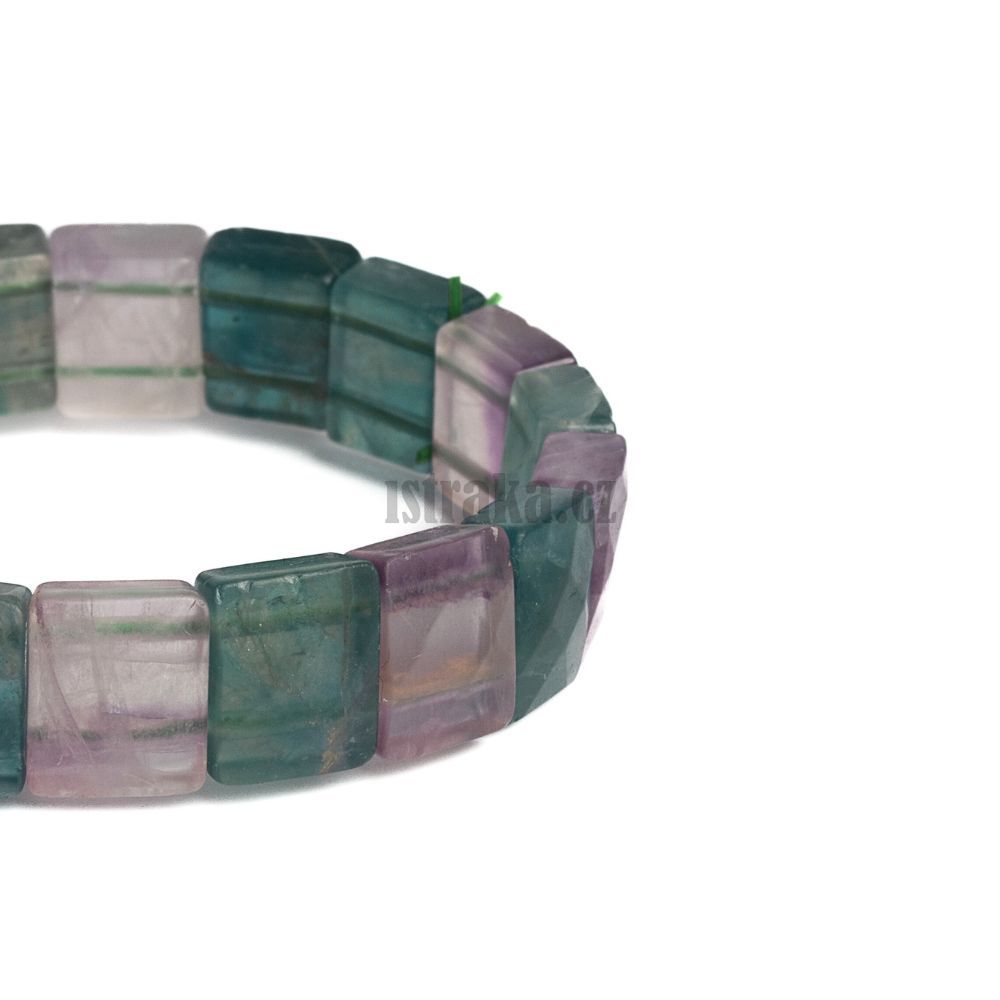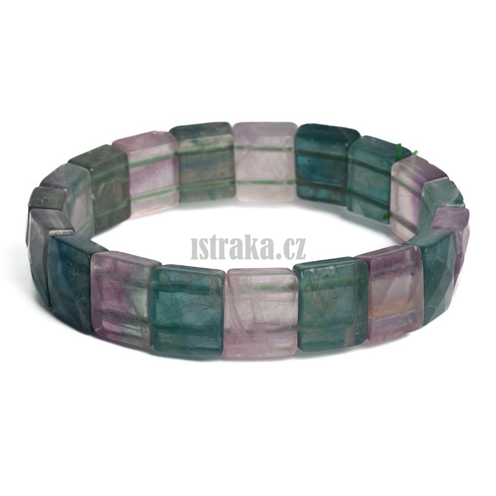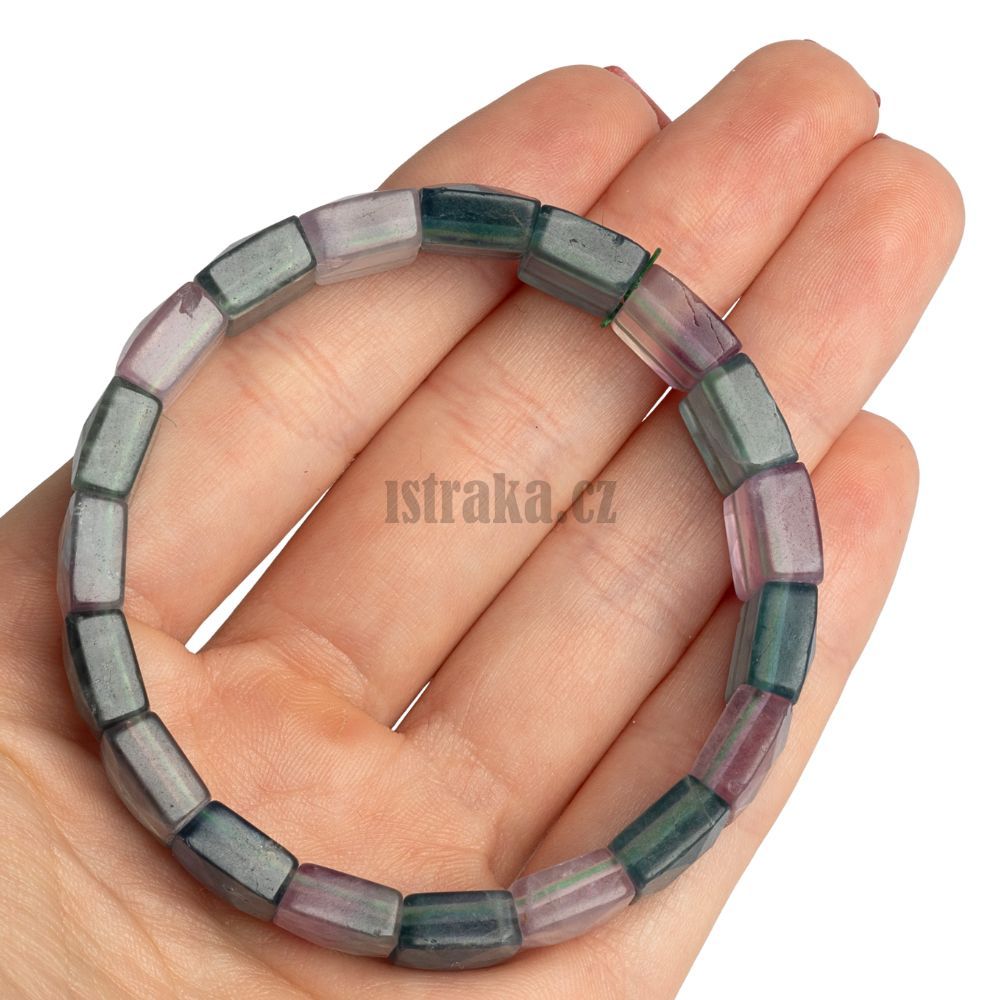 Náramek ze zlomků minerálu fluorit. Náramky jsou elastické, mají jednotnou velikost a pro pohodlné nošení jsou vhodné pro zápěstí s obvodem maximálně 17,5 cm.