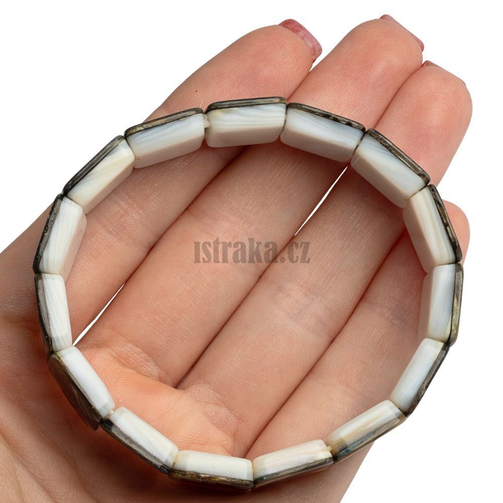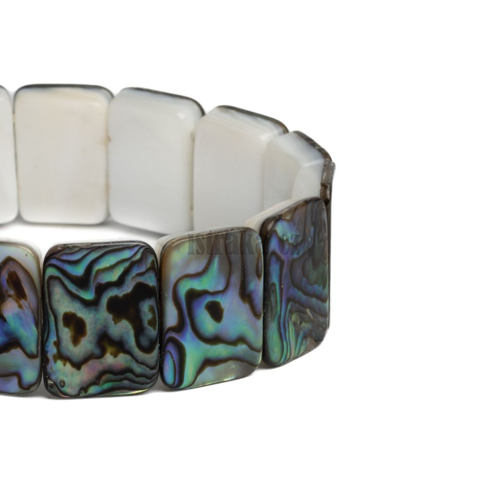 Plochý elastický náramek z přírodní perletě abalone ve tvaru čtverců.