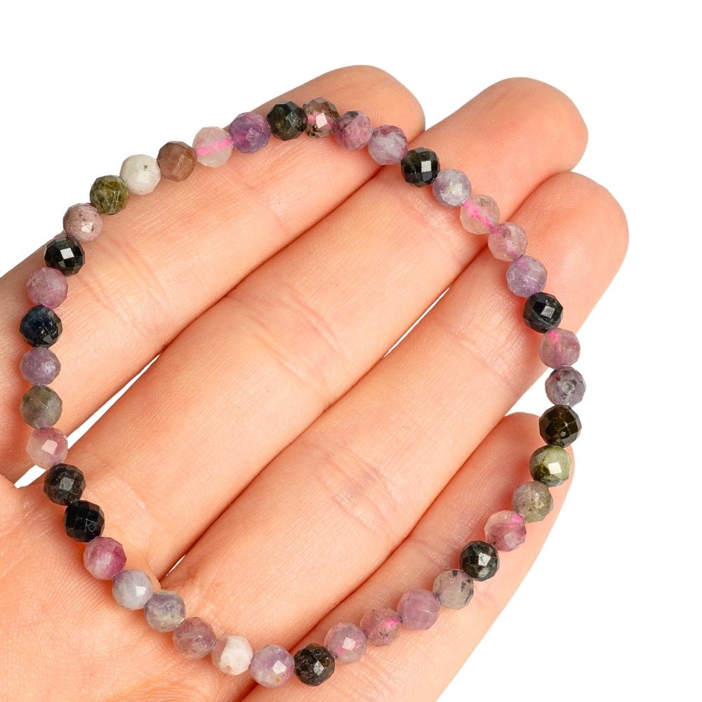 Náramek z přírodního minerálu turmalín tvořený barevnými broušenými korálky. Náramek je elastický a pro pohodlné nošení vhodný na zápěstí s obvodem maximálně 16,5 cm.