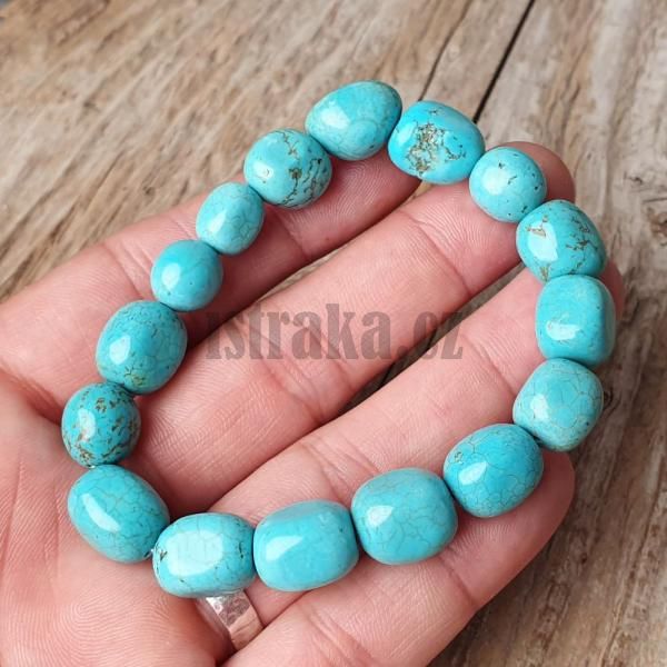 - Pokud vám dobarvený polodrahokam pustil barvu, dopřejte mu koupel v čisté vlažné vodě – namočte jej na hodinku až dvě do vody, přebytečné barvivo se uvolní do vody a náramek by měl být po takové koupeli barevně stálý.