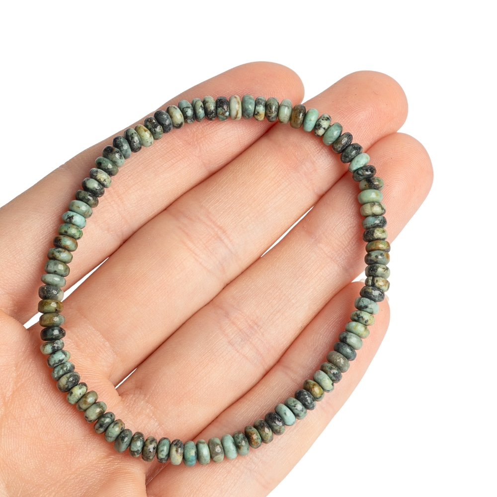 Lesklý elastický náramek tvořený hladkými rondelkami z přírodního polodrahokamu jaspis kambaba navlečenými na vícevláknové gumičce.