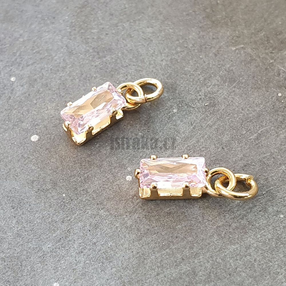 Obdélník minipřívěsek zlatý se světle růžovým zirkonem