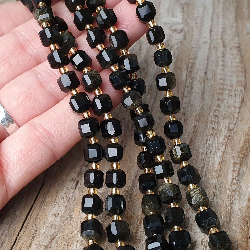 - Obsidián zlatý korálky 6mm kostky broušené půlšňůra