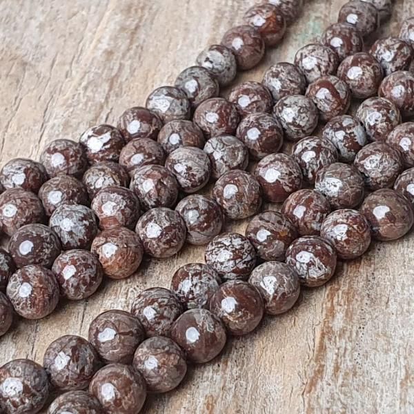 Hnědé korálky s šedou kresbou z minerálu obsidián vločkový hnědý v 8mm velikosti s matným hladkým povrchem.