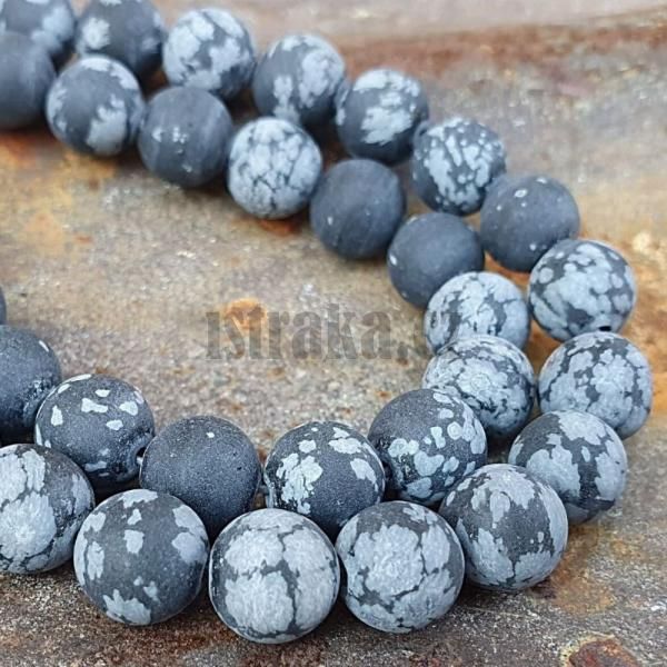 Poutavý korálek s točeným výbrusem z přírodního minerálu obsidián vločkový vhodný jako centrální prvek do náramku z menších korálků i na výrobu náušniček.