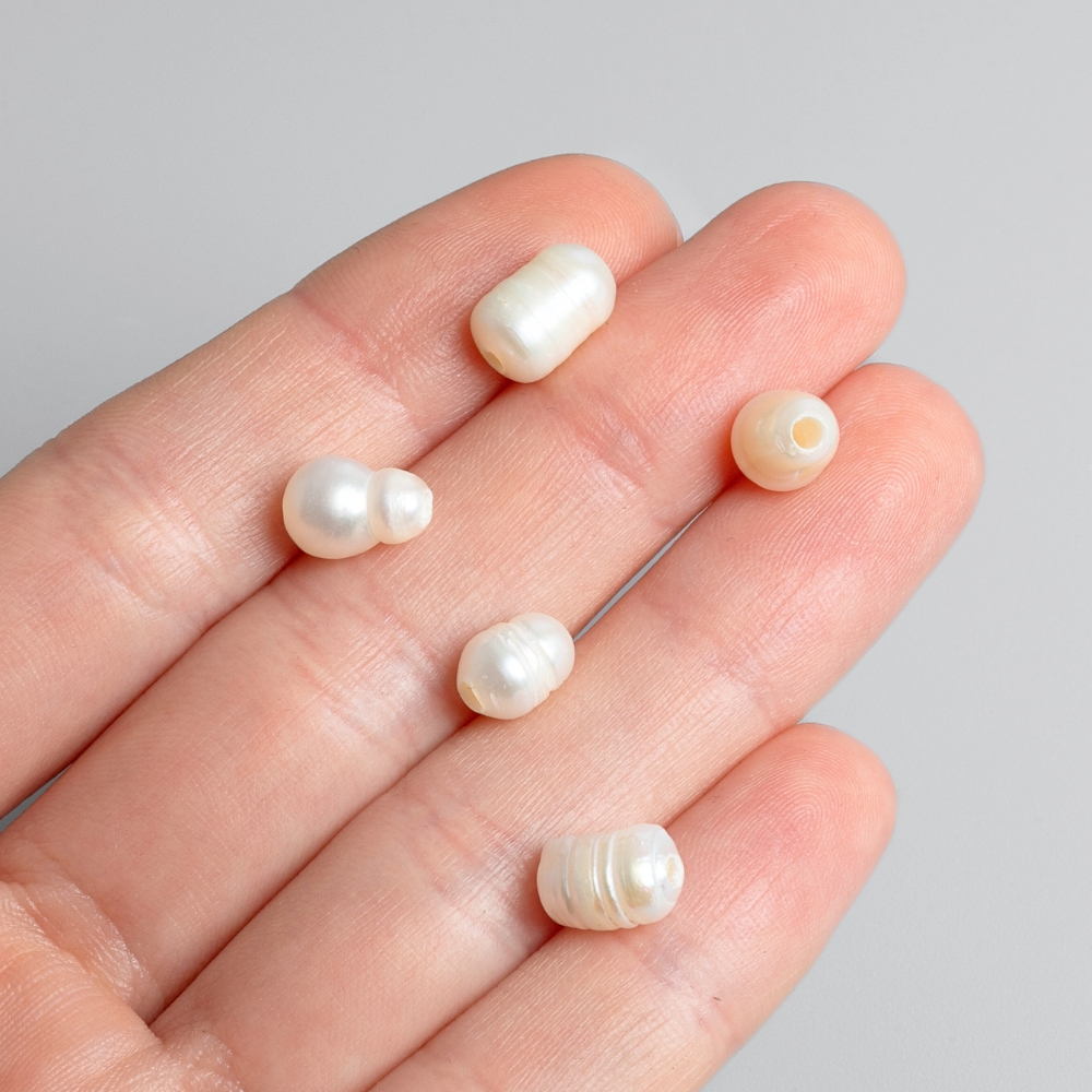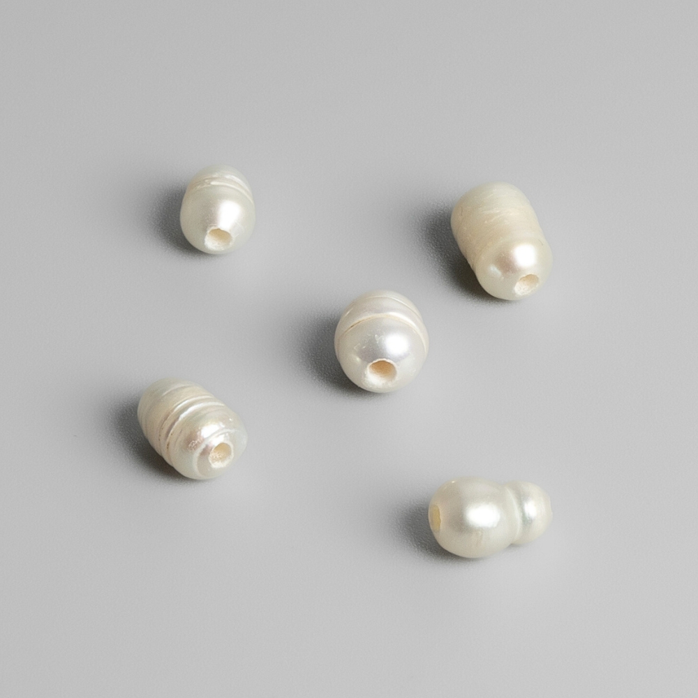 Kultivované říční perly s plným tvarem skvěle vyniknou na náhrdelnících, ale i na náramcích. Každá perlička má svůj jedinečný tvar. Navlékejte buď dvojmo na tenší gumičku nebo poplastované lanka. Dírky jsou drobné.