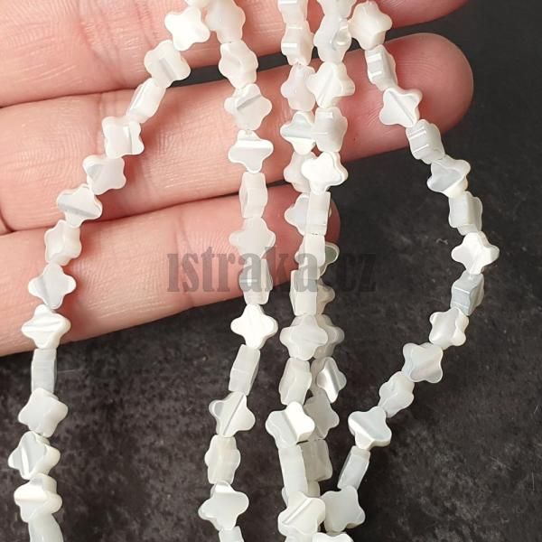 Perleť korálky 6x6mm čtyřlístek bílé půlšňůra