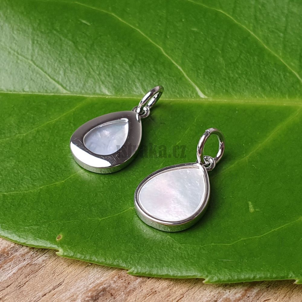 • Perleť přívěsek 9x13mm slza stříbrný rám