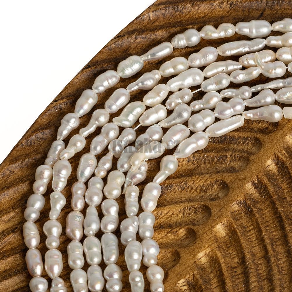 • Perly říční korálky 4–5mm podlouhlé nepravidelné šňůra