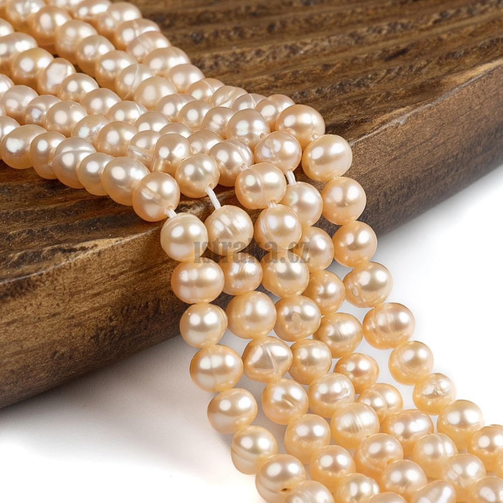 Perly říční korálky 4,5-5mm meruňkové šňůra