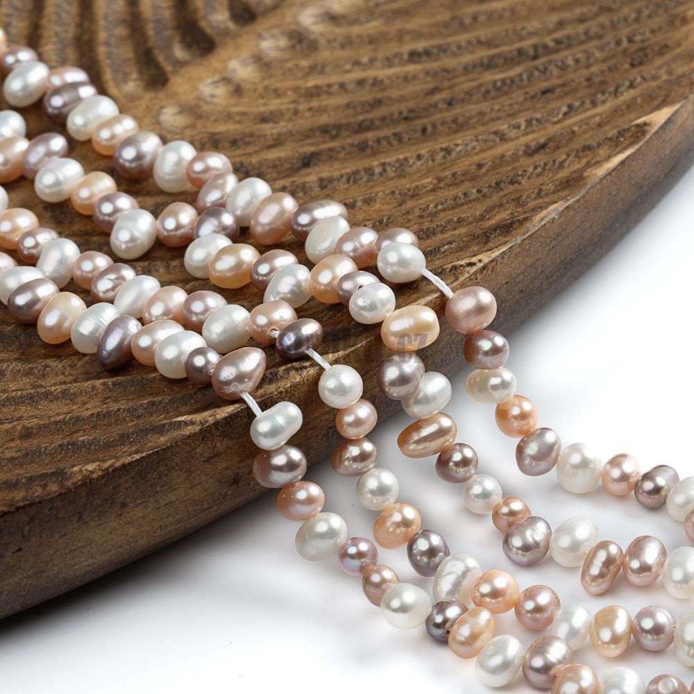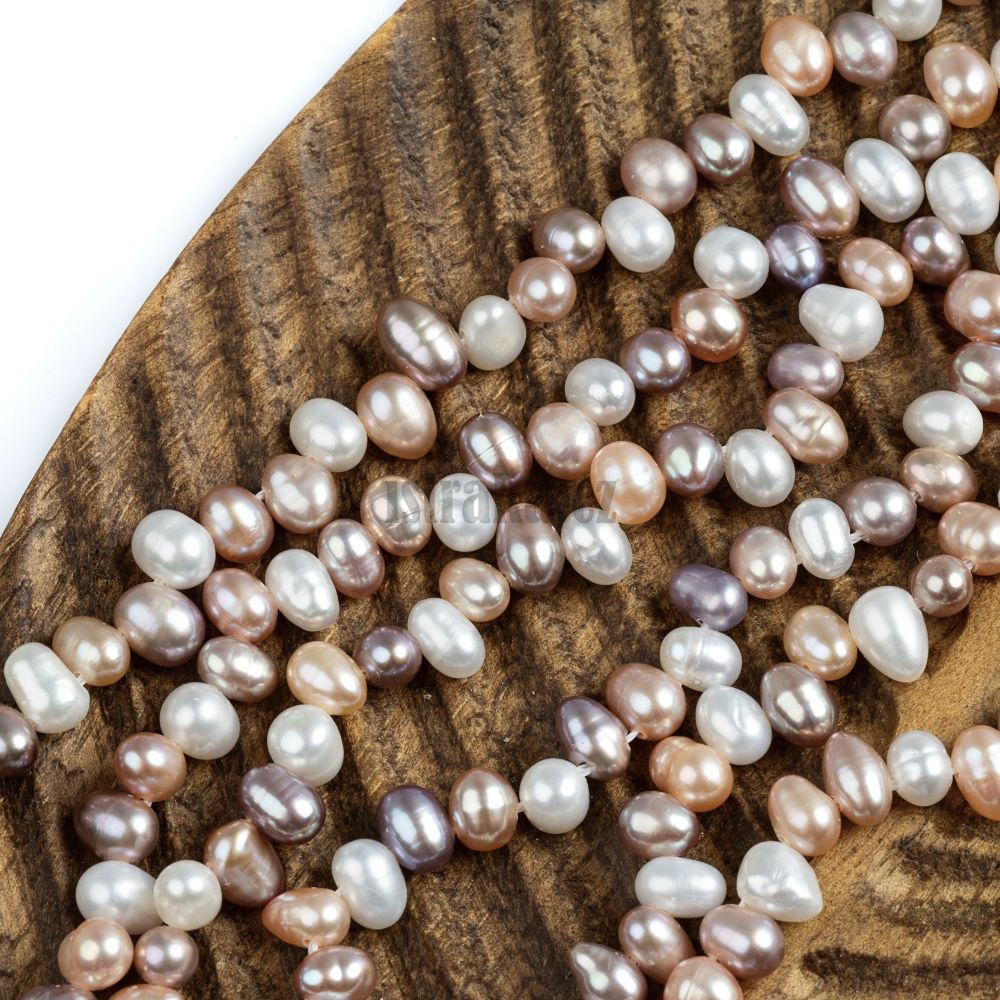 - Perly říční korálky 6-7mm nepravidelné slzičky mix barev šňůra