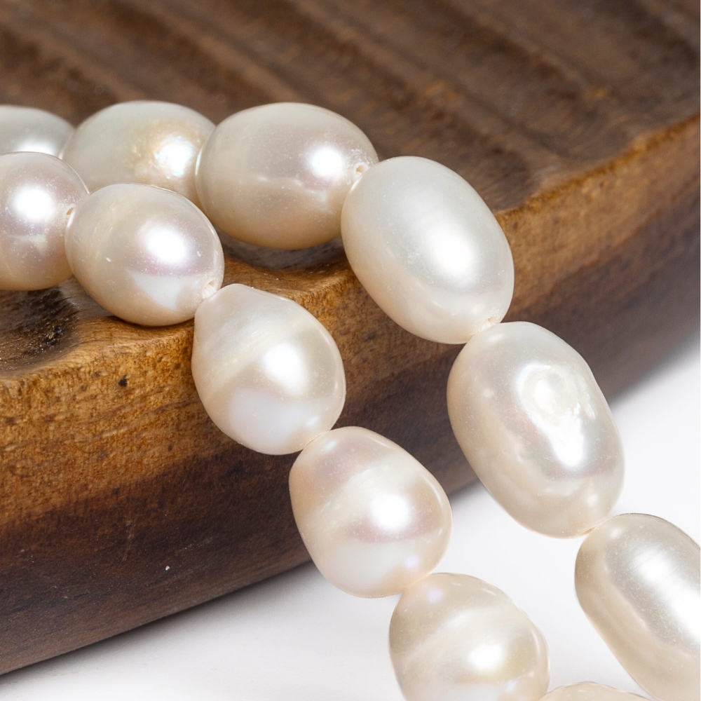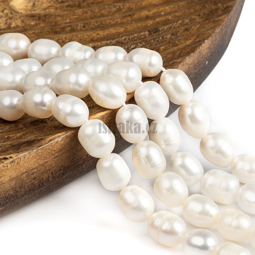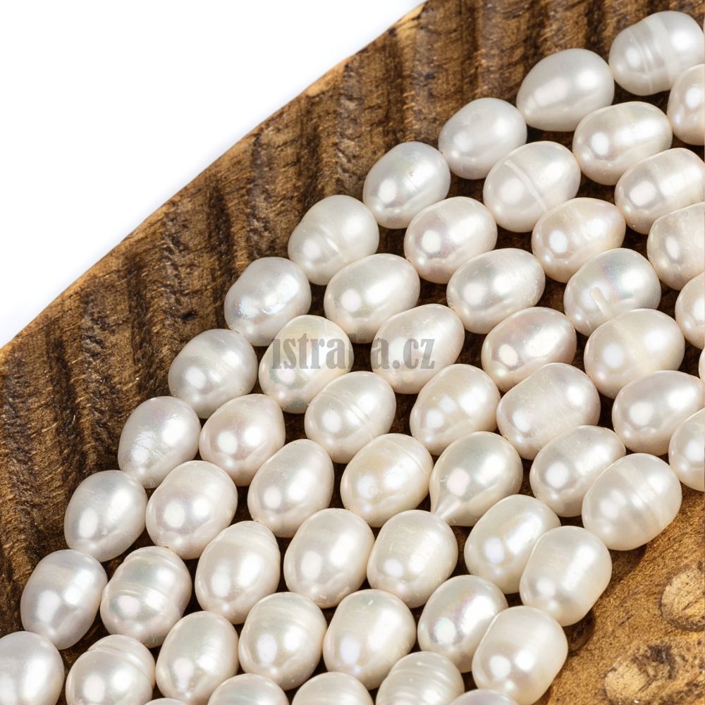- Perly říční korálky 6-7mm podlouhlé šňůra