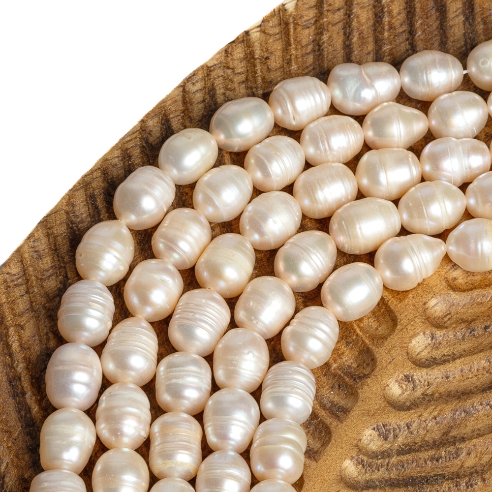 Perly říční korálky 8-9mm podlouhlé meruňkové šňůra