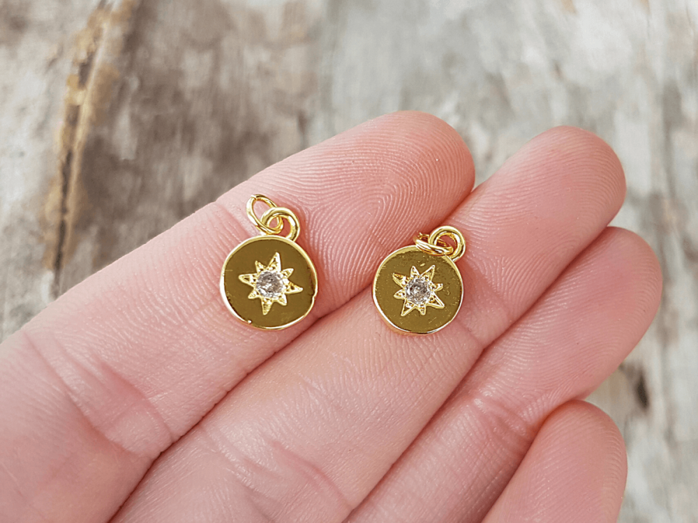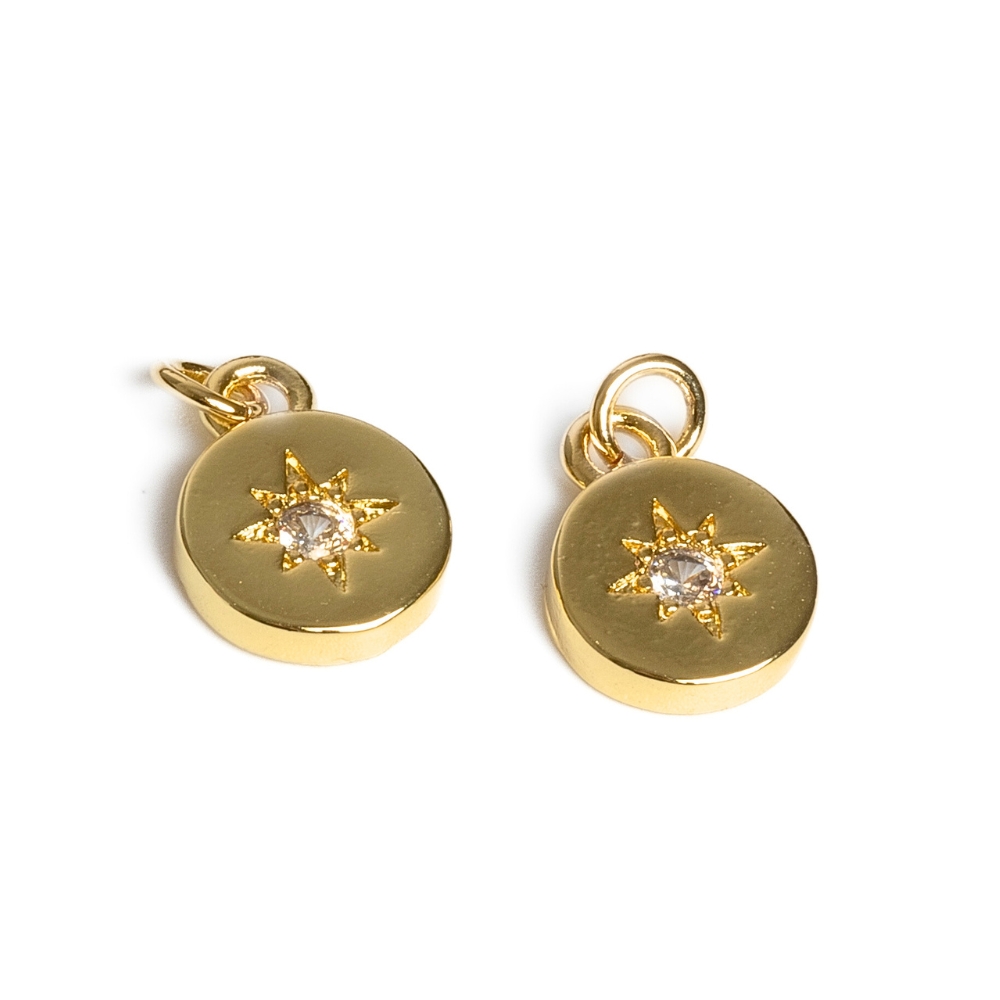 Placička s hvězdičkou přívěsek zlatý s bílými zirkony