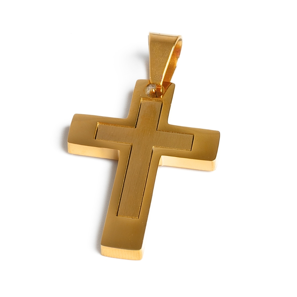 Přívěsek kříž 30mm zlatý nerez
