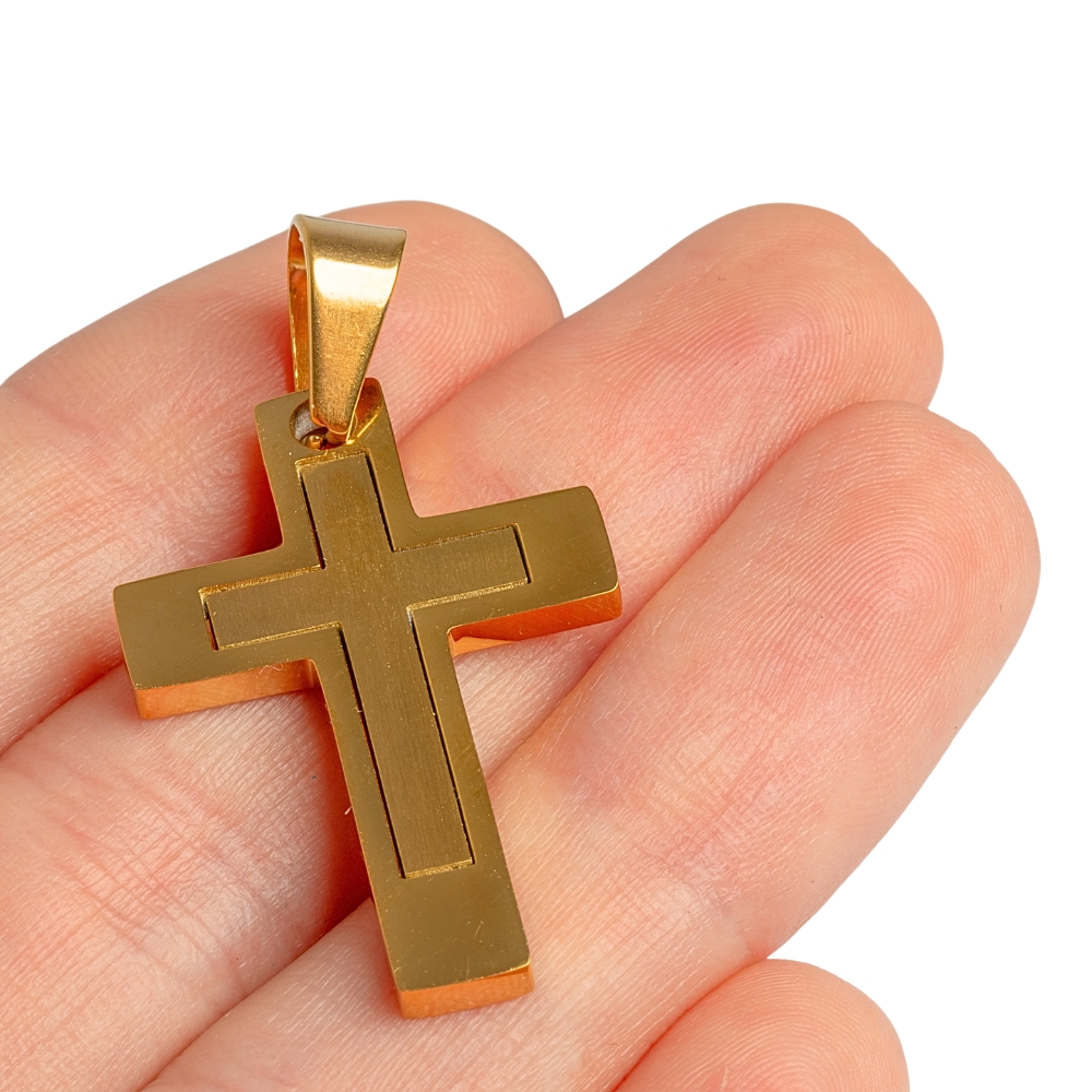 • Přívěsek kříž 30mm zlatý nerez