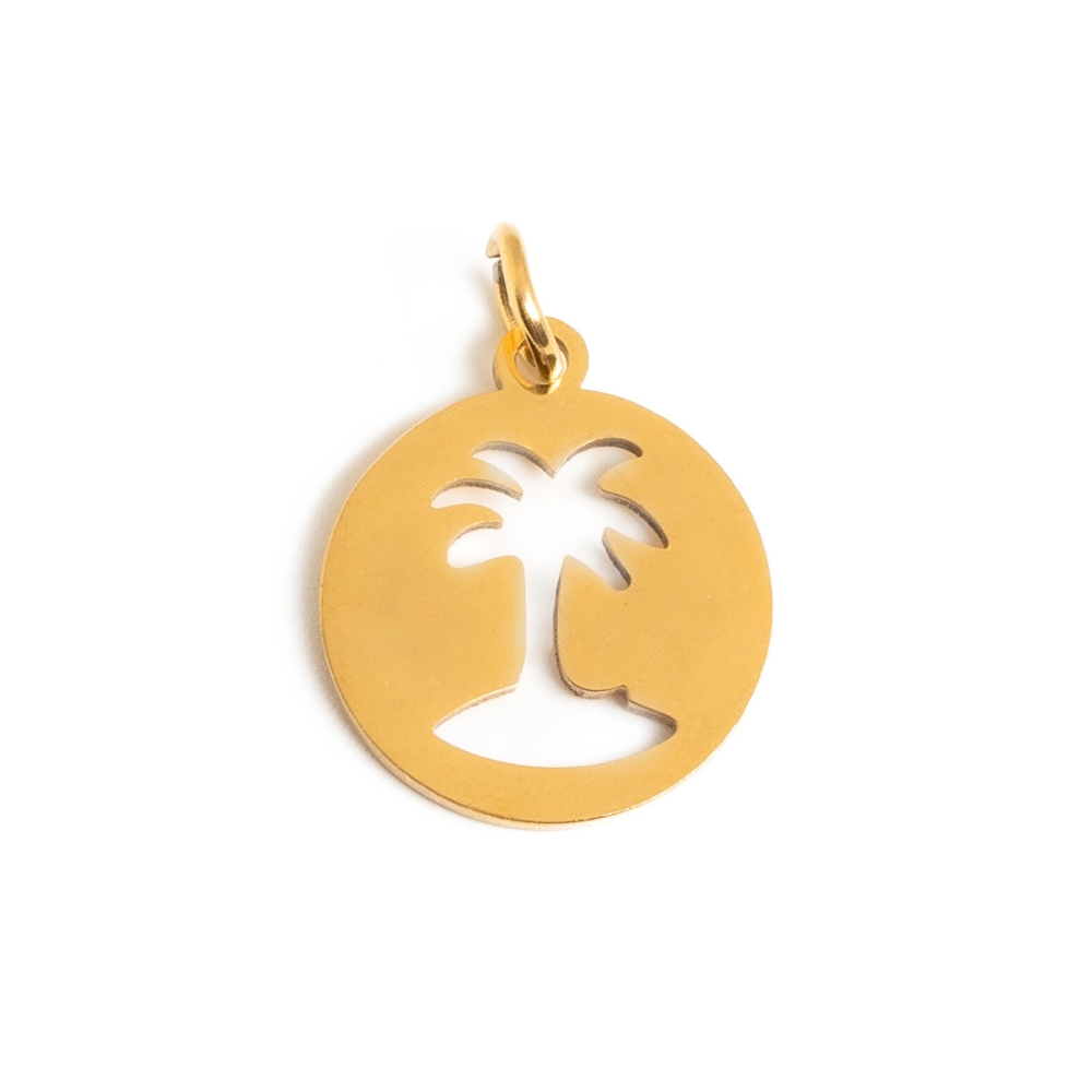 • Přívěsek placka s kokosovou palmou 13mm nerez zlatý