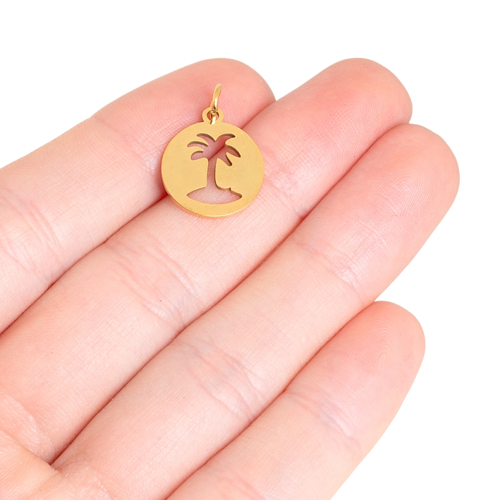 Přívěsek placka s kokosovou palmou 13mm nerez zlatý