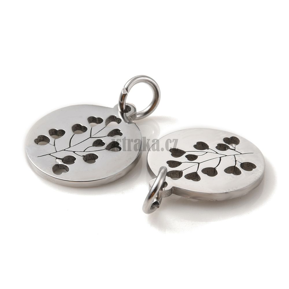 Přívěsek placka s květem 12mm starostříbrný nerez