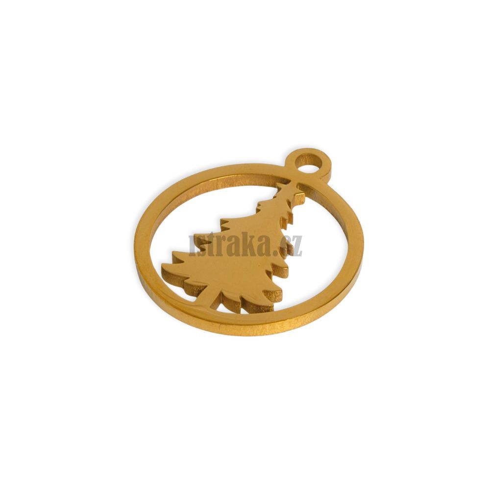 Přívěsek vánoční stromeček 13mm nerez zlatý