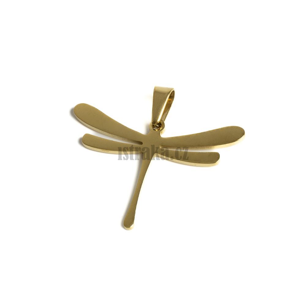 Přívěsek vážka se šlupnou 32x45mm zlatý nerez