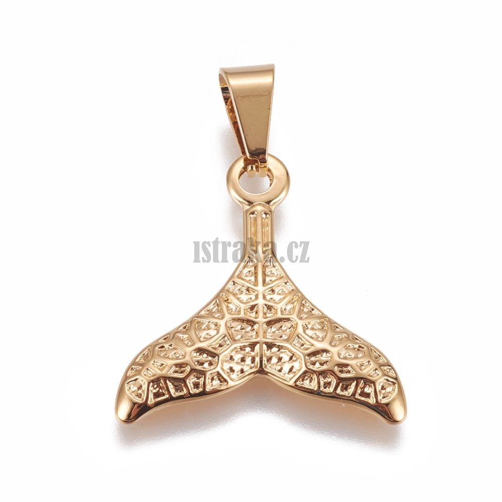 • Přívěsek vroubkovaný ocas velryby se šlupnou 26x25mm zlatý nerez