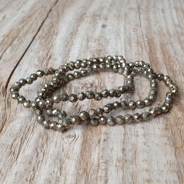 Korálky z přírodního pyritu o velikosti 4 mm s hladkým lesklým povrchem