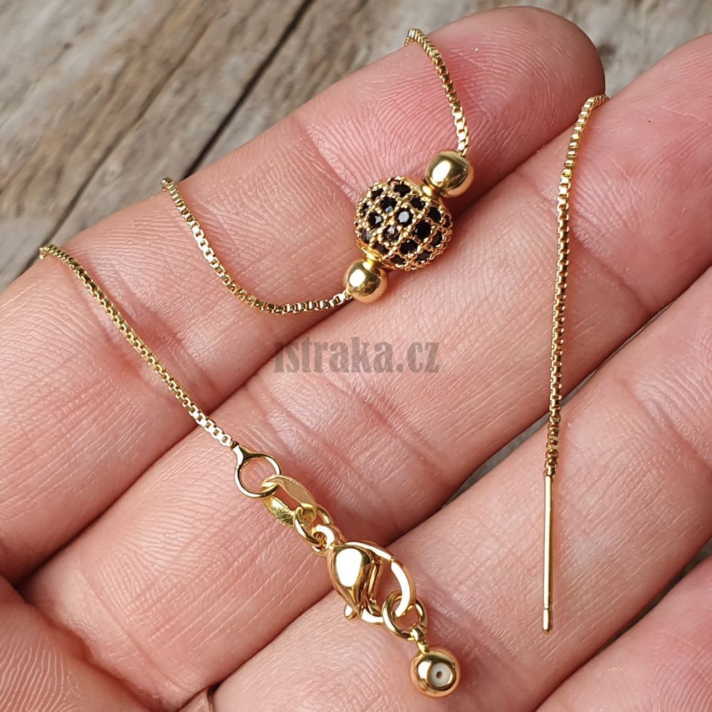 Řetízek na náhrdelník s jehlou na konci zlatý + 2x stoper
