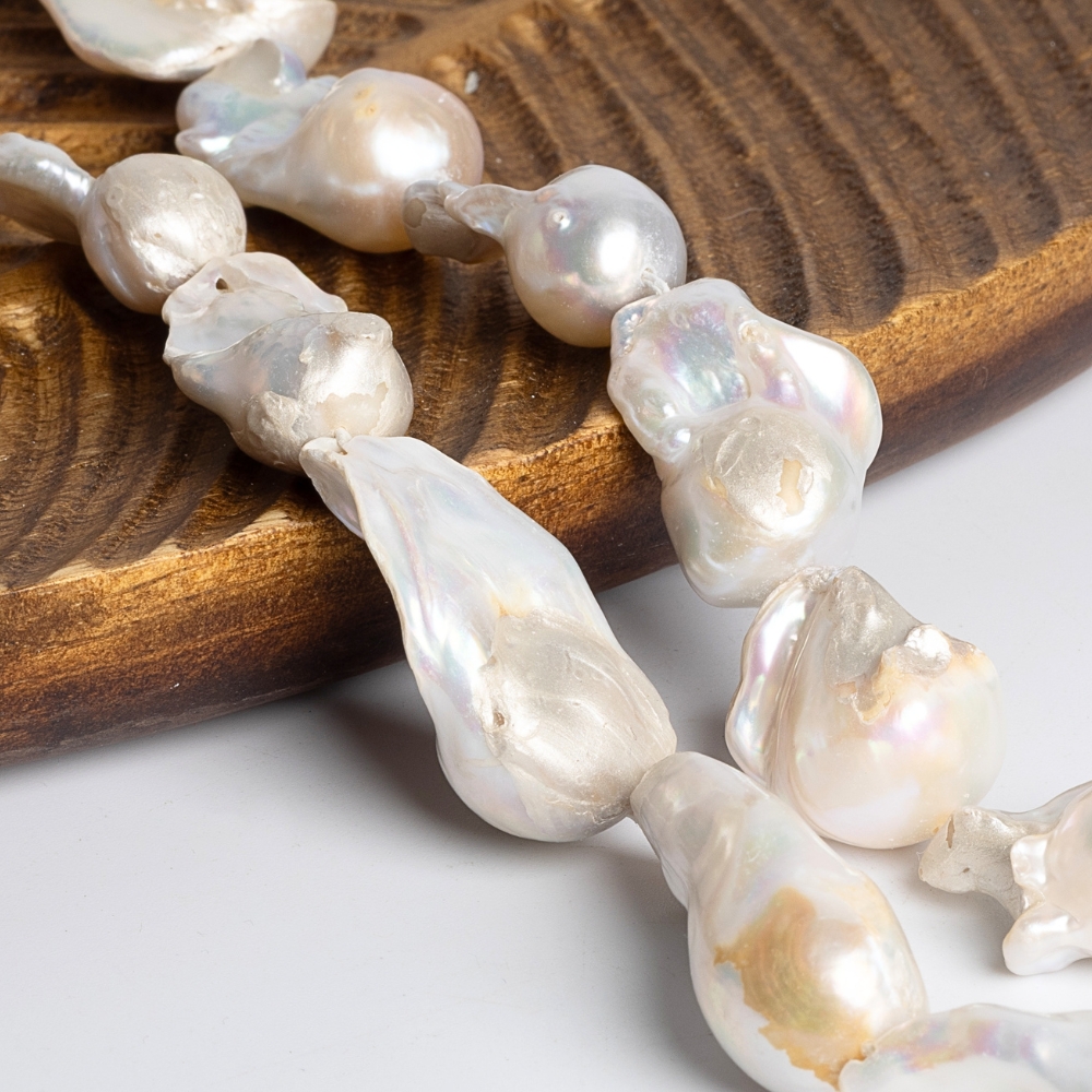 • Říční perly – korálky 20–35 × 15–20 mm, barokní tvar, šňůra, B kvalita