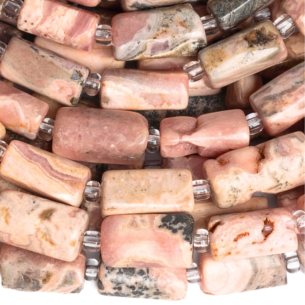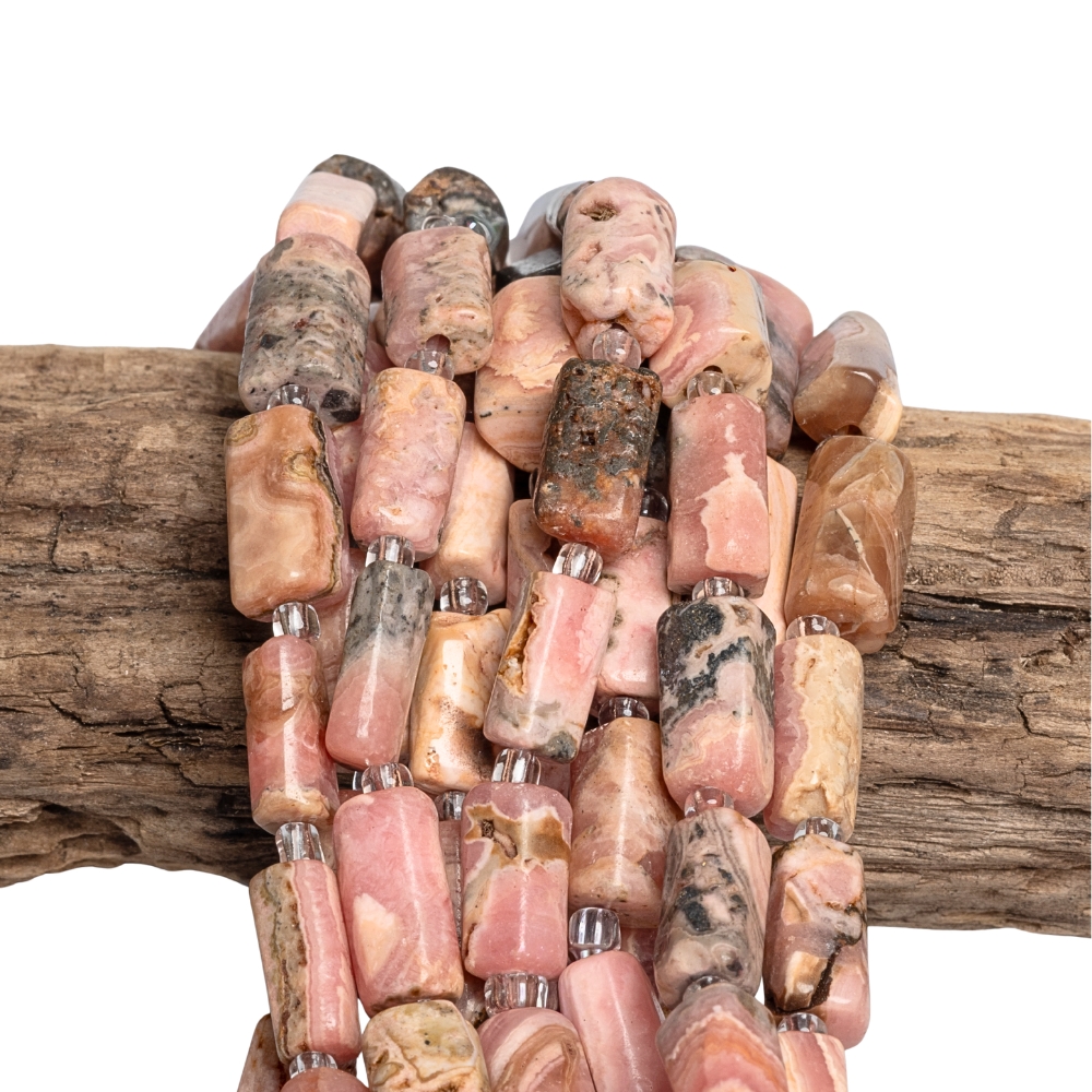 Rodochrozit korálky válečky lesklé půlšňůra