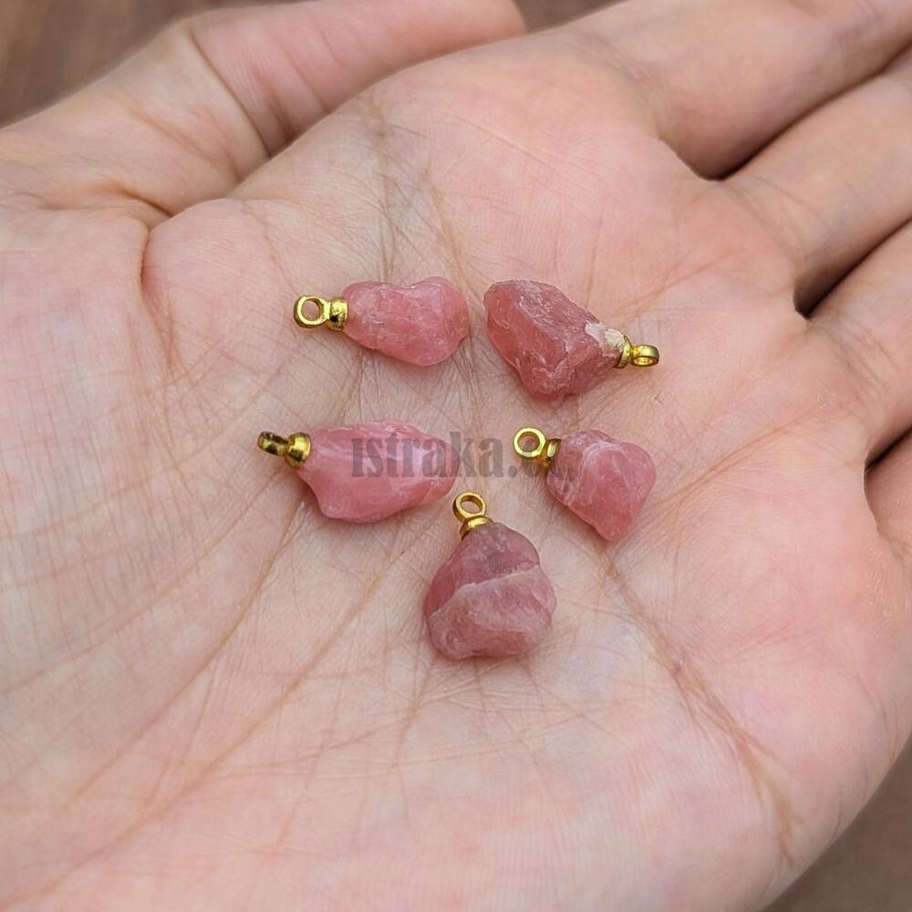 • Rodochrozit surový minipřívěsek se zlatým očkem z nerezové oceli