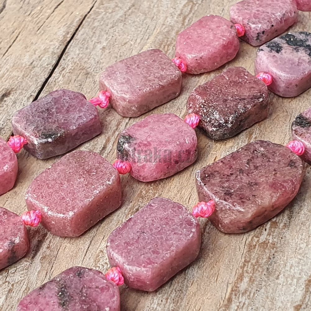 - Rodonit Brazílie korálky 10x13mm obdélníky půlšňůra